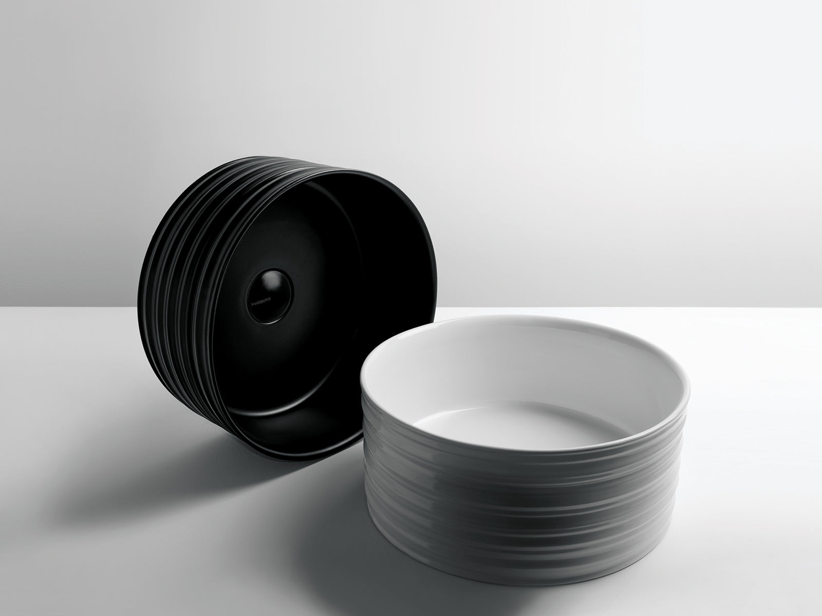 TRACE is a countertop washbasin that stands out for its plastic impact and evokes the sculptural work of water on the material.